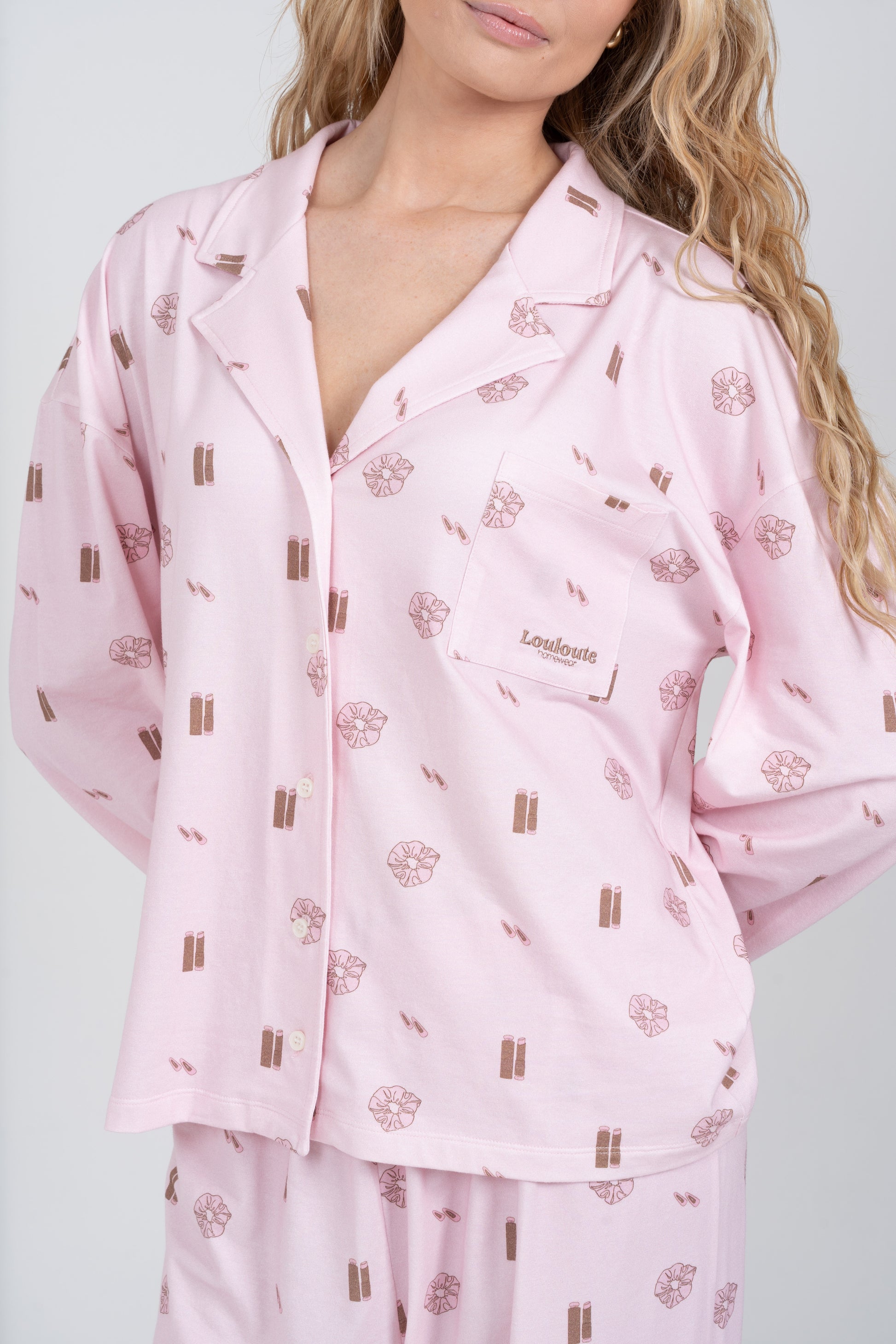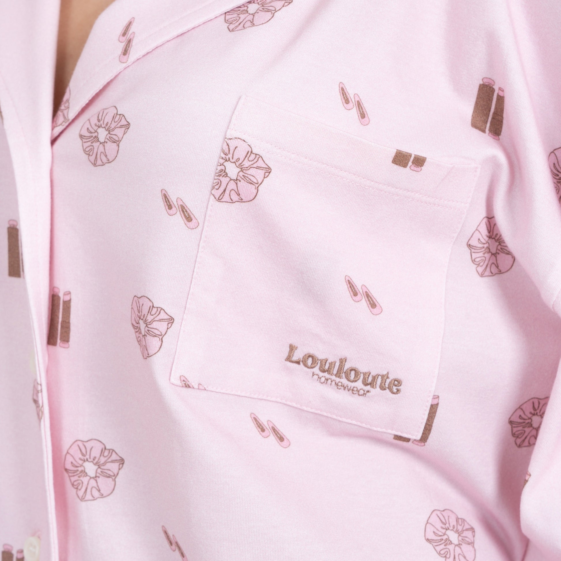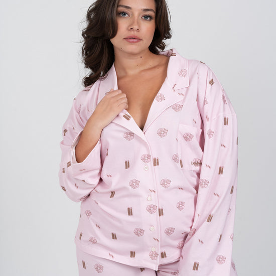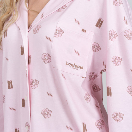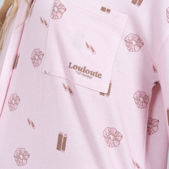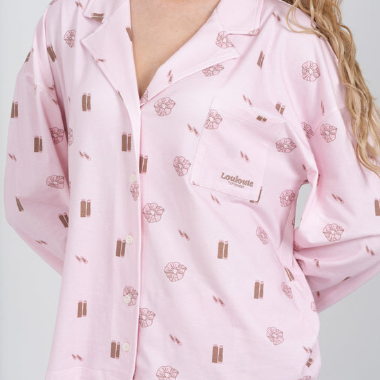 Le pyjama Louloute Signature est le pyjama de la clean girl par excellence. Son rose très doux, associé à des visuels marrons subtils, crée un look délicat et élégant, pensé pour être porté tout au long de l’année.