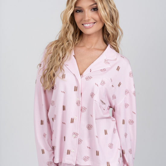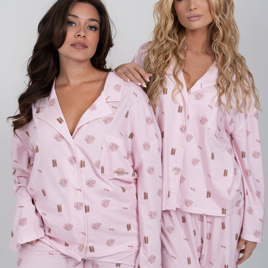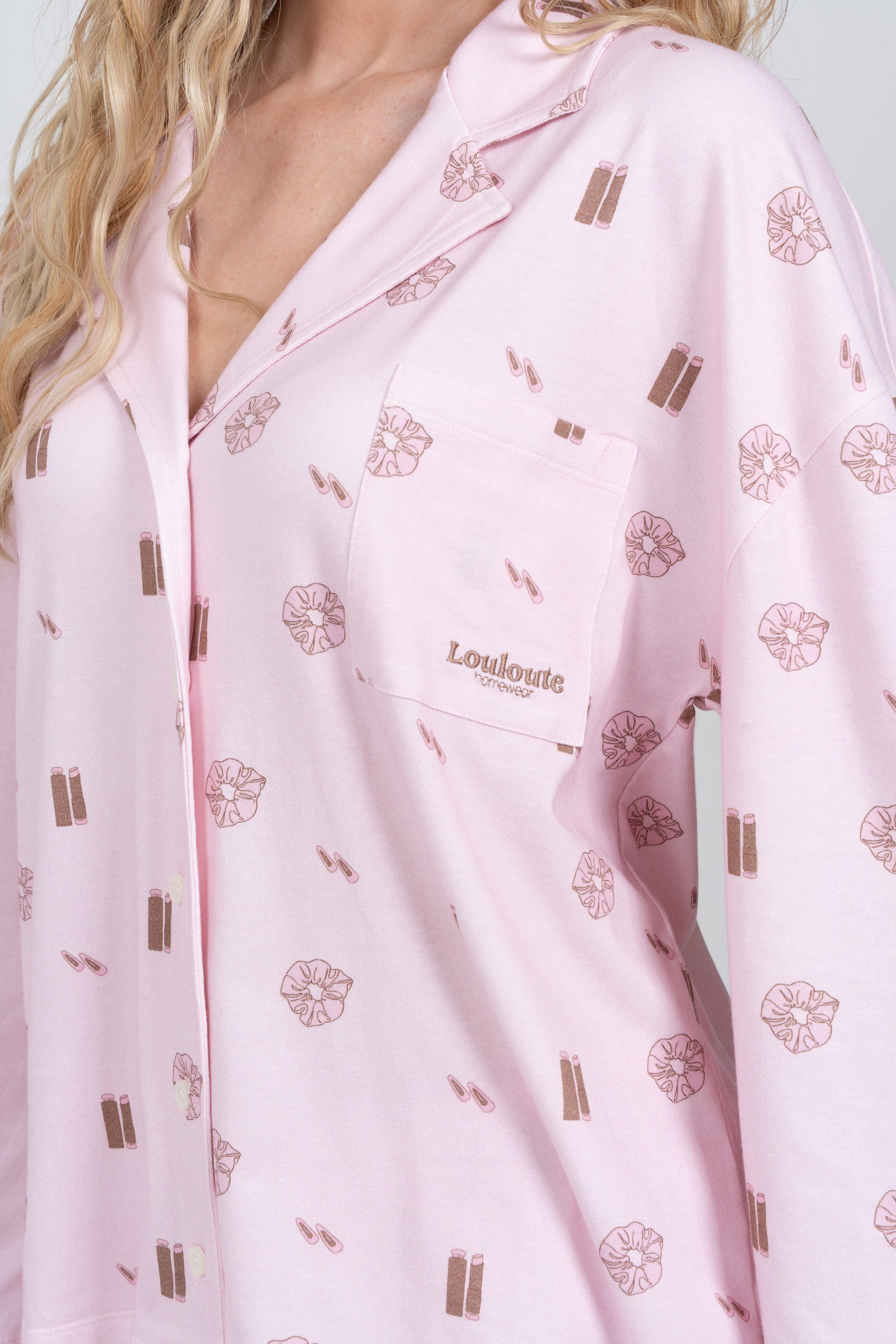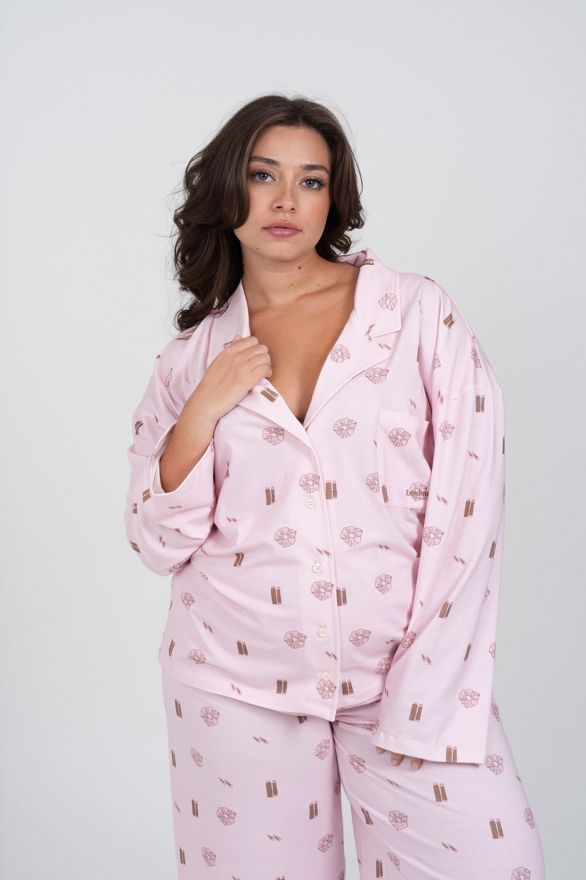 Le pyjama Louloute Signature est le pyjama de la clean girl par excellence. Son rose très doux, associé à des visuels marrons subtils, crée un look délicat et élégant, pensé pour être porté tout au long de l’année.